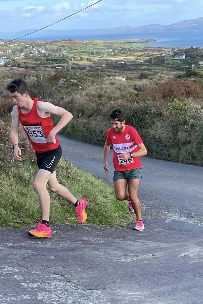 I think that the geography of Cobh is unusual. It is an extremely hilly island, very similar to Achill in that it has great wind and great climbs. After the first two miles the Strava bar chart took a steep drop, the beetroot juice stopped working, the wind started blowing and the road went up and up. The first hill before three miles is probably the worst on the course. It destroys average pace, destroys it and makes ones Strava look terrible. I just about got up it on in contact with Barry and John who climb like sherpas compared to my elephant like efforts.